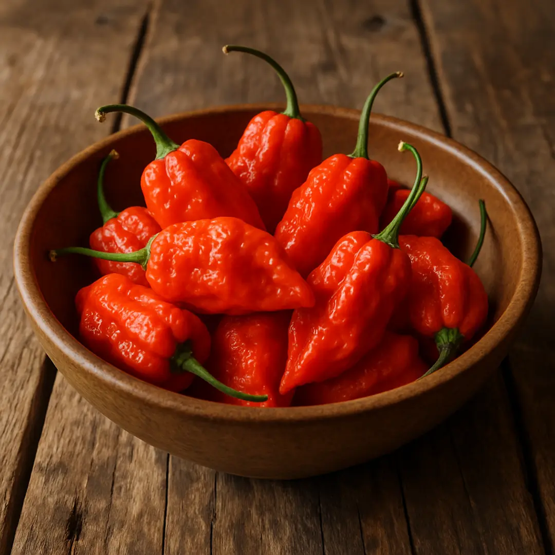 The Bhut Jolokia, also known as the ghost pepper, is cultivated in Northeast India and is a hybrid of Capsicum chinese. It’s one of the hottest chili peppers in the world. The pepper is typically red or orange when ripe and has a wrinkled, bumpy appearance. It contains capsaicin, which has potential anti-inflammatory and pain-relieving properties. The capsaicin in the pepper can act as a natural pesticide.